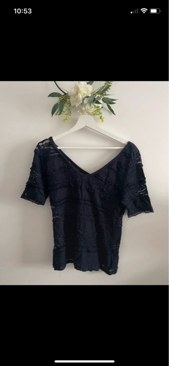 🌸T-shirt manches courtes à dentelles bleu marine taille M LOGG by H&M🌸