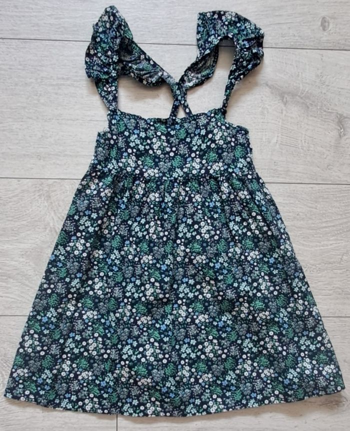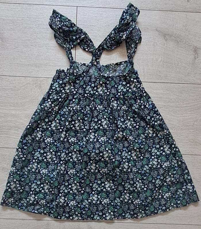 * La troisième, robe bleue marine avec motifs petites fleurs blanches, vertes et bleus. Croisé dans le dos de la marque La Halle.