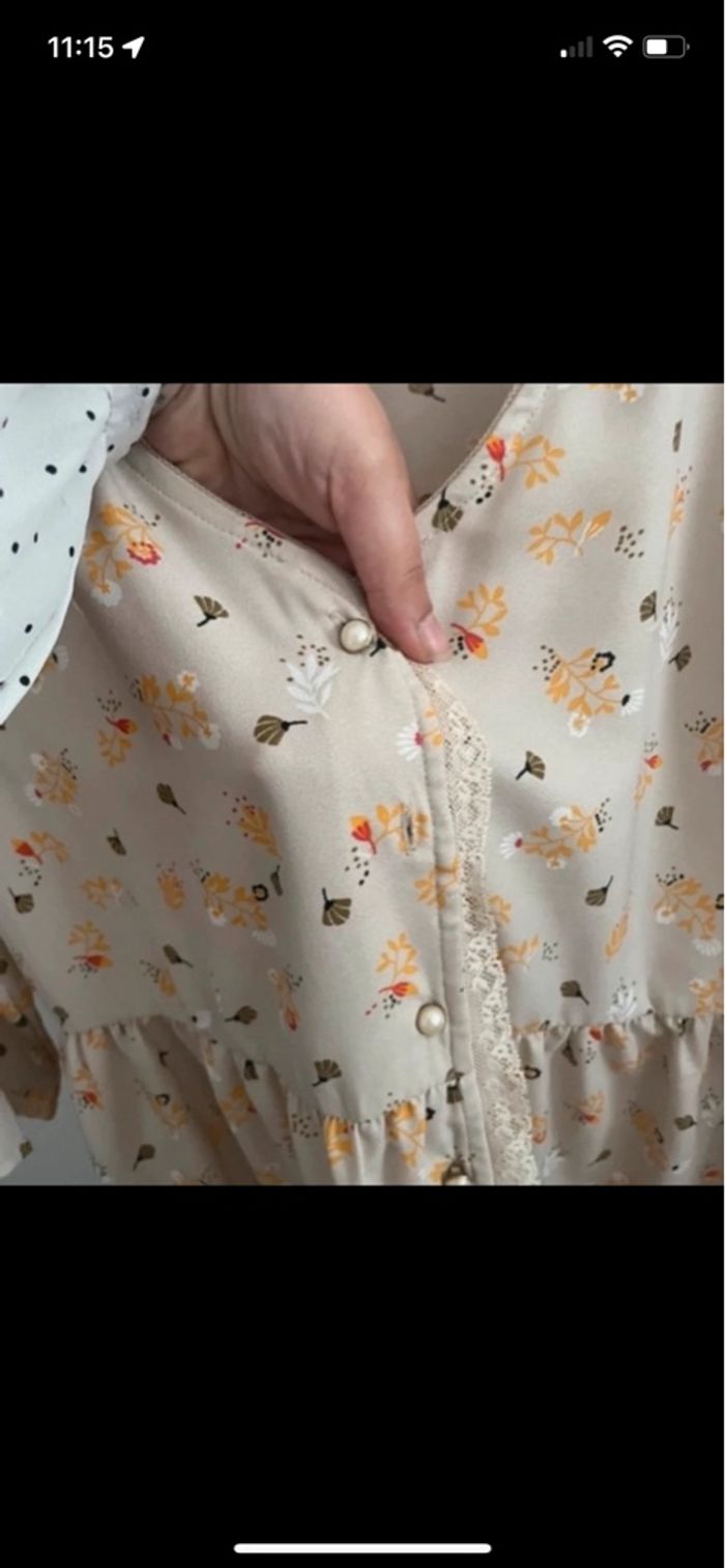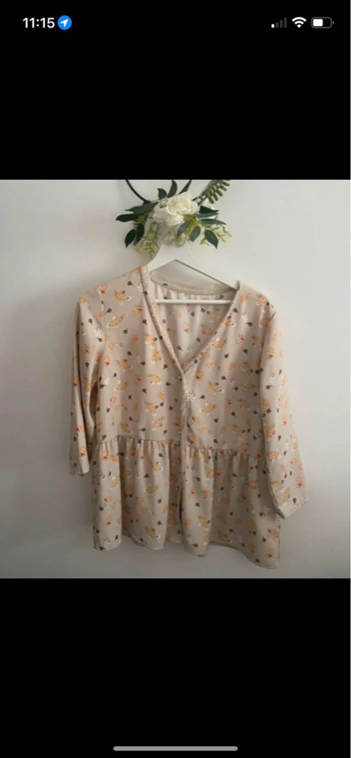 🌸 Blouse manches 3/4 fleurie beige taille 38🌸