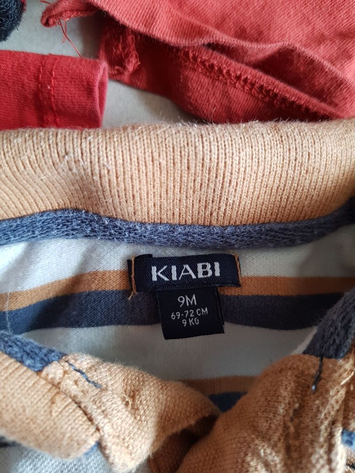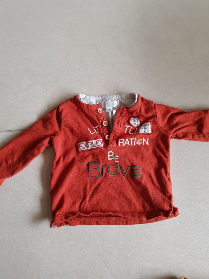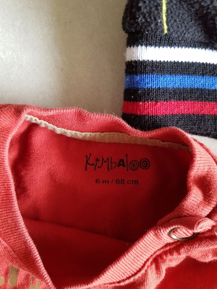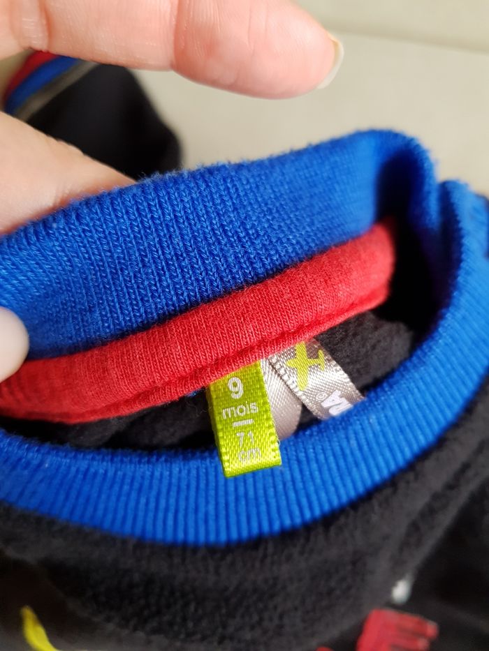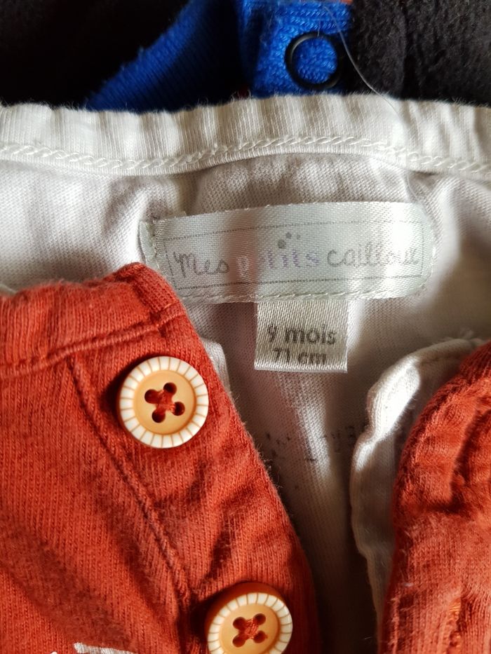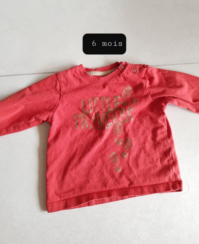 Le tee-shirt manche longue orange 6 mois, les autres 9 mois. Le noir est en polaire. N'hésitez pas à acheter en lot réduction à partir de 2 articles achetés.