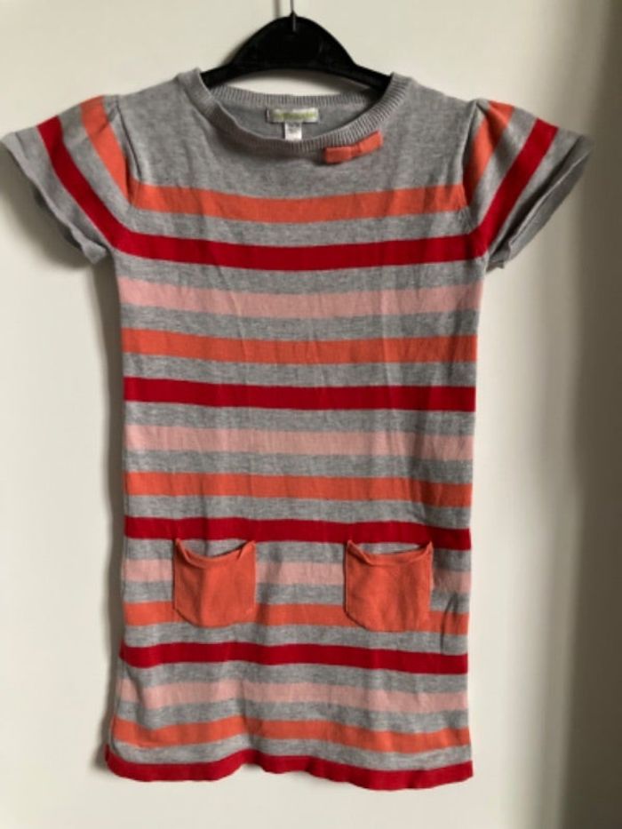 Robe pull vertbaudet 100% coton grise rayée rouge orange rose Taille 6 ans #tisse59fille6ans