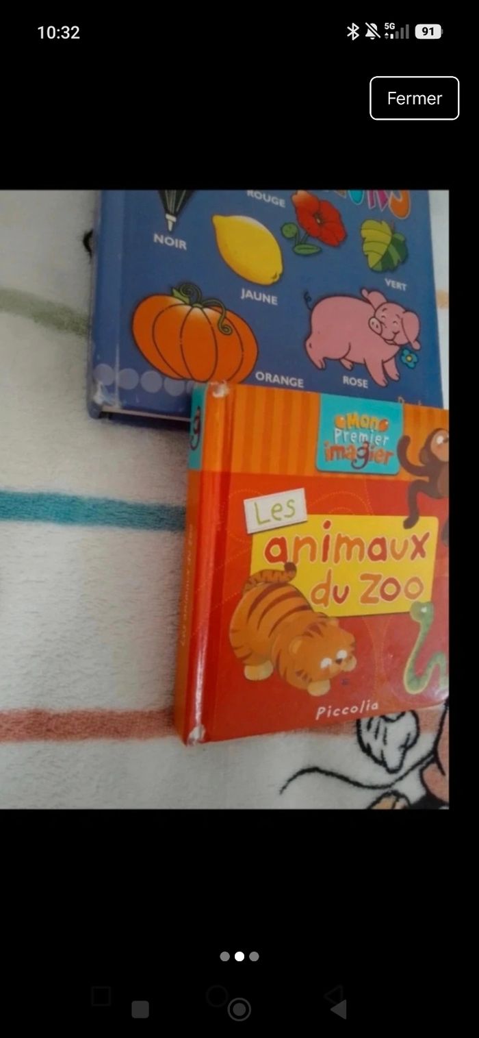 2 petits livres pour bébé Bon état, les bouts sont abîmés mais peuvent toujours faire un petit heureux
