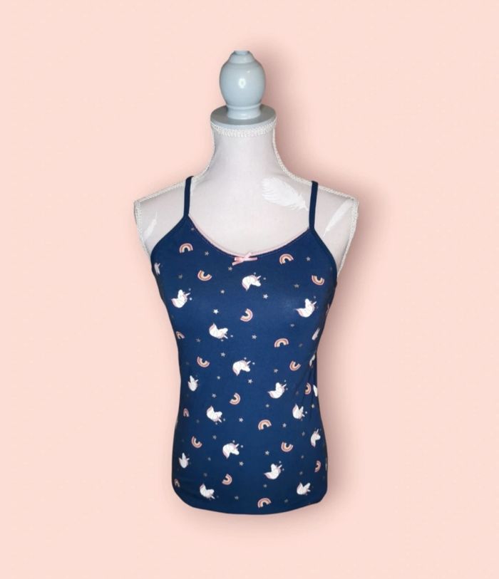 Débardeur fines bretelles bleu marine licornes et petit noeud  kiabi 10 ans - photo numéro 1