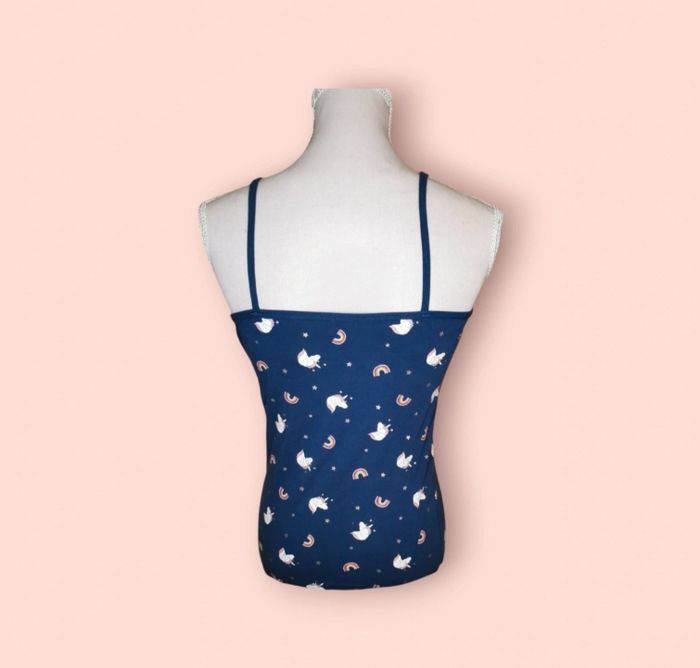 Débardeur fines bretelles bleu marine licornes et petit noeud  kiabi 10 ans