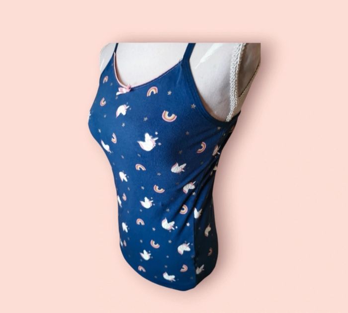 Débardeur fines bretelles bleu marine licornes et petit noeud  kiabi 10 ans - photo numéro 2