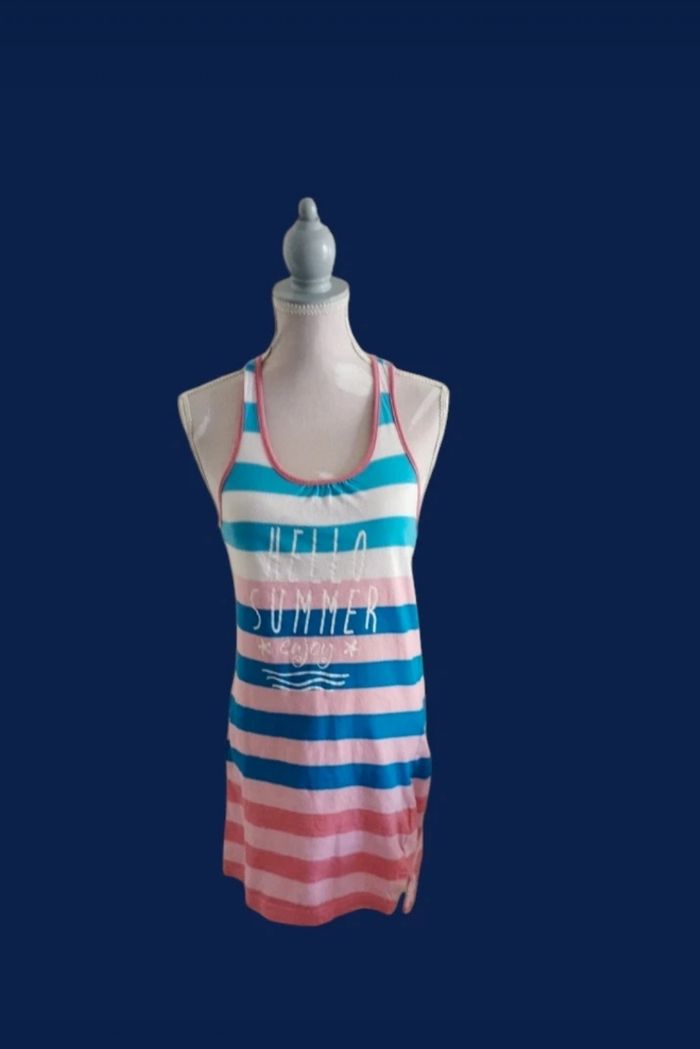 Robe débardeur rayée multicolore de plage ouvertures côtés en bas Admas taille 10 ans