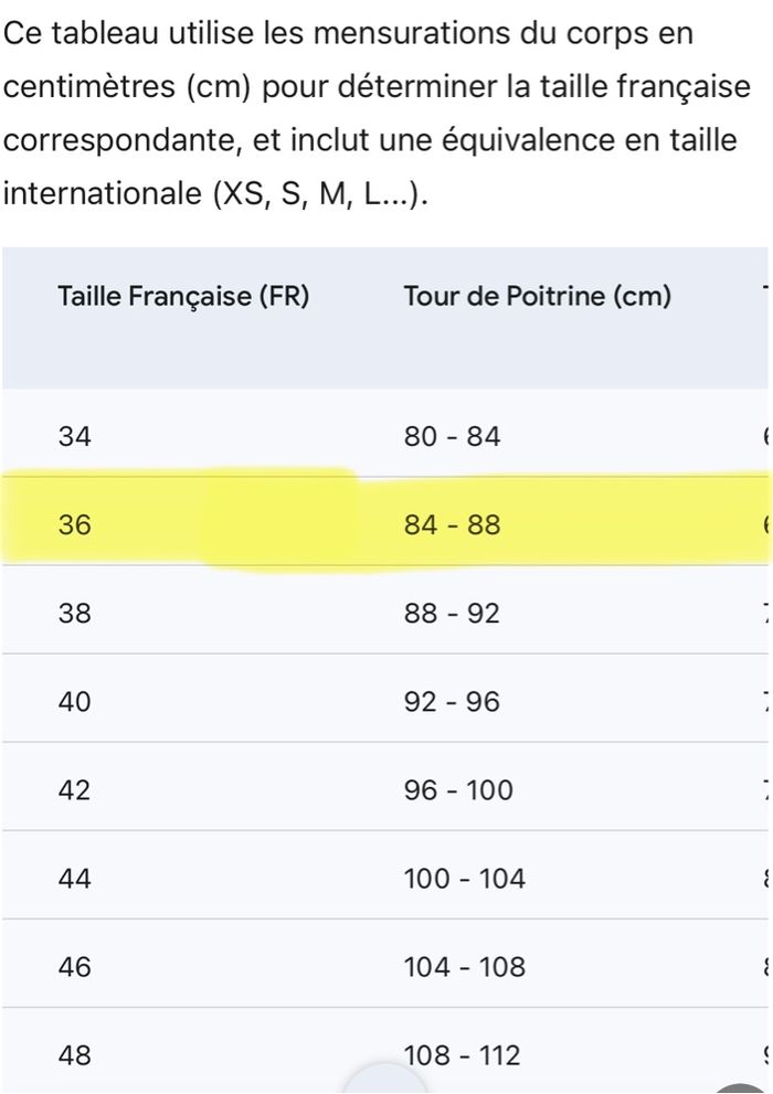 Il est noté sur l’étiquette taille L mais selon deux guides de l’IA,il en ressort S/36.