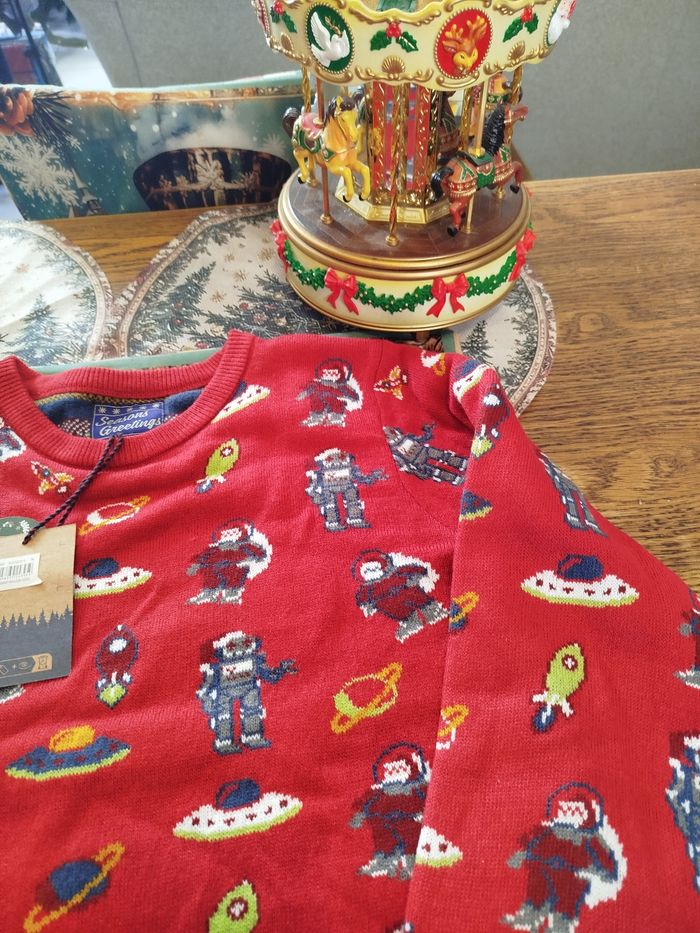 Pull de Noël épais 🎁🎄🎅 – Taille 11/12 ans Adorable pull de Noël épais à motif espace (astronautes, fusées, planètes). Édition spéciale Noël, idéal pour les fêtes ou les journées d’hiver. 🧵 État : Neuf 🏷️ Prix magasin : 19,99 € – Je le vends 13,50 € 📦 Envoi rapide et soigné N’hésitez pas si vous avez des questions !