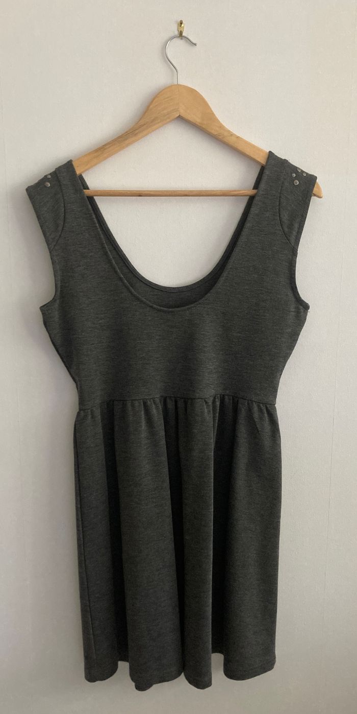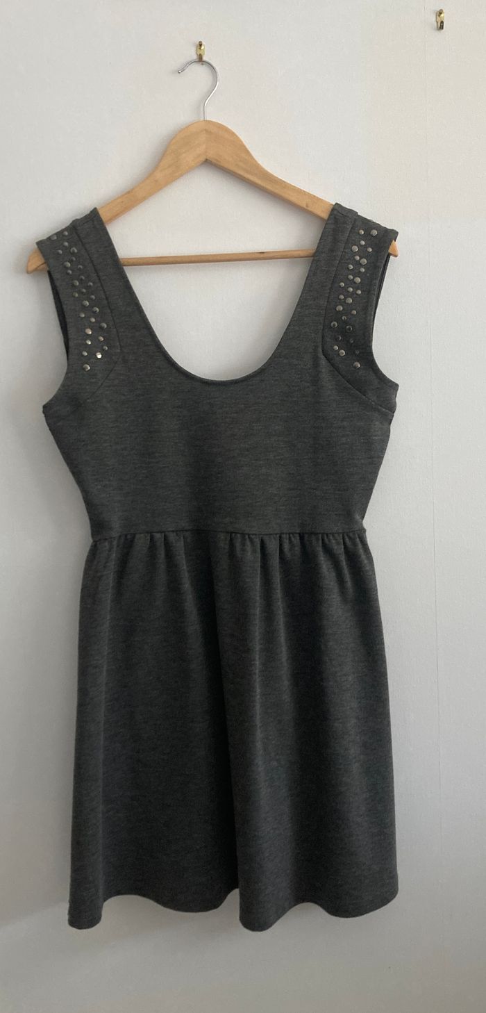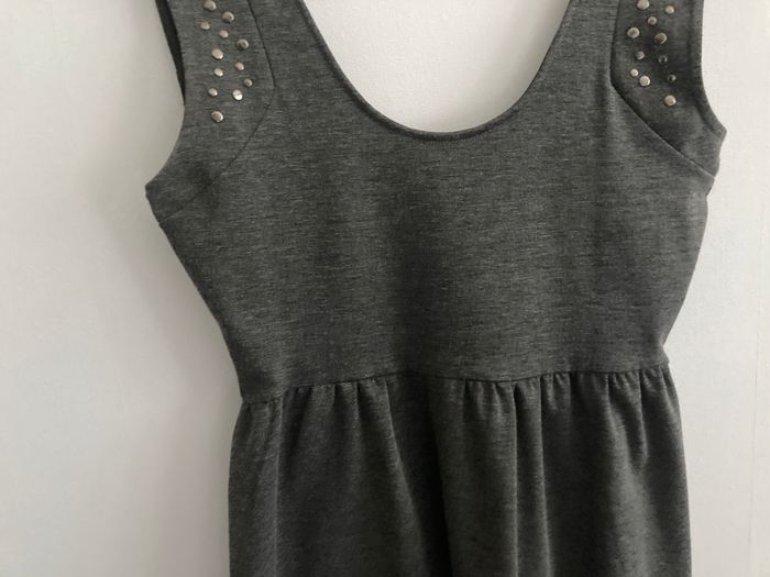 taille M robe chasuble grise sequins sur épaule hauteur totale 86 cm largeur au niveau des aisselles 44 cm impeccable peu portée