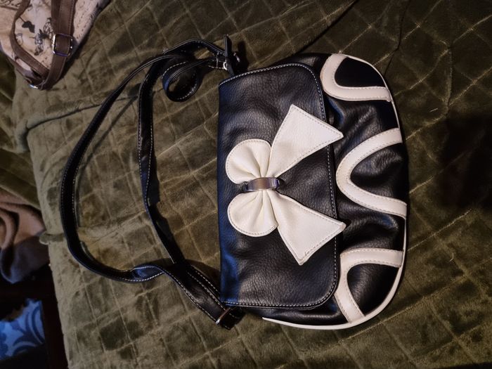 Sac à main noir avec un nœud blanc. Lanière réglable. En très bon état. Envoi rapide et soigné. Négociable.