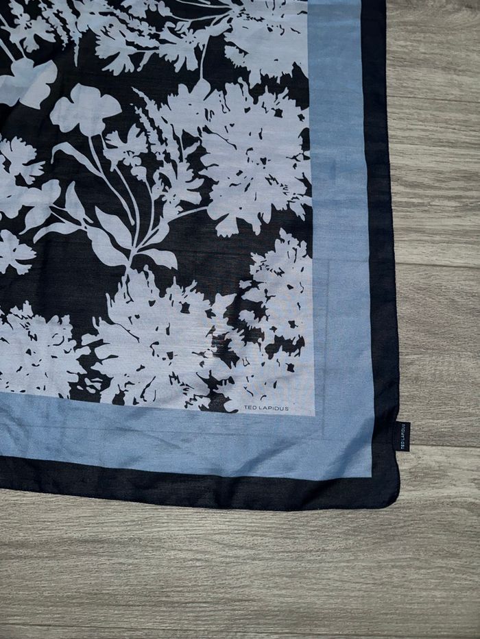 Foulard étole à fleurs bleu marine et bleu ciel Ted Lapidus Vintage 75x75cm - photo numéro 3