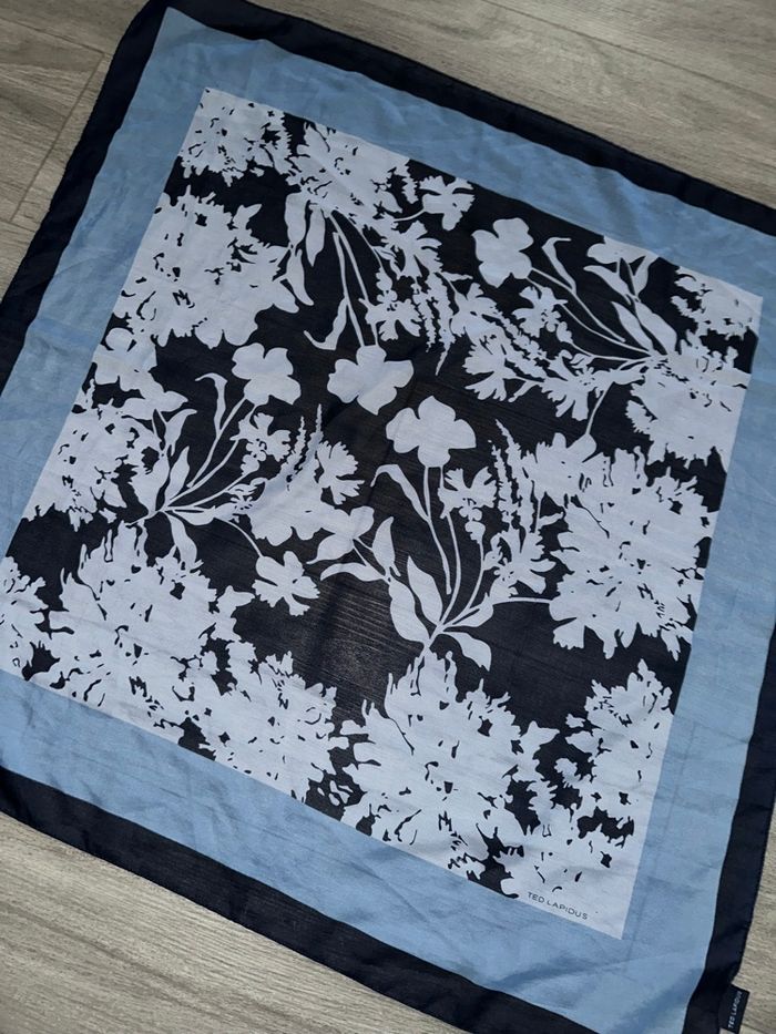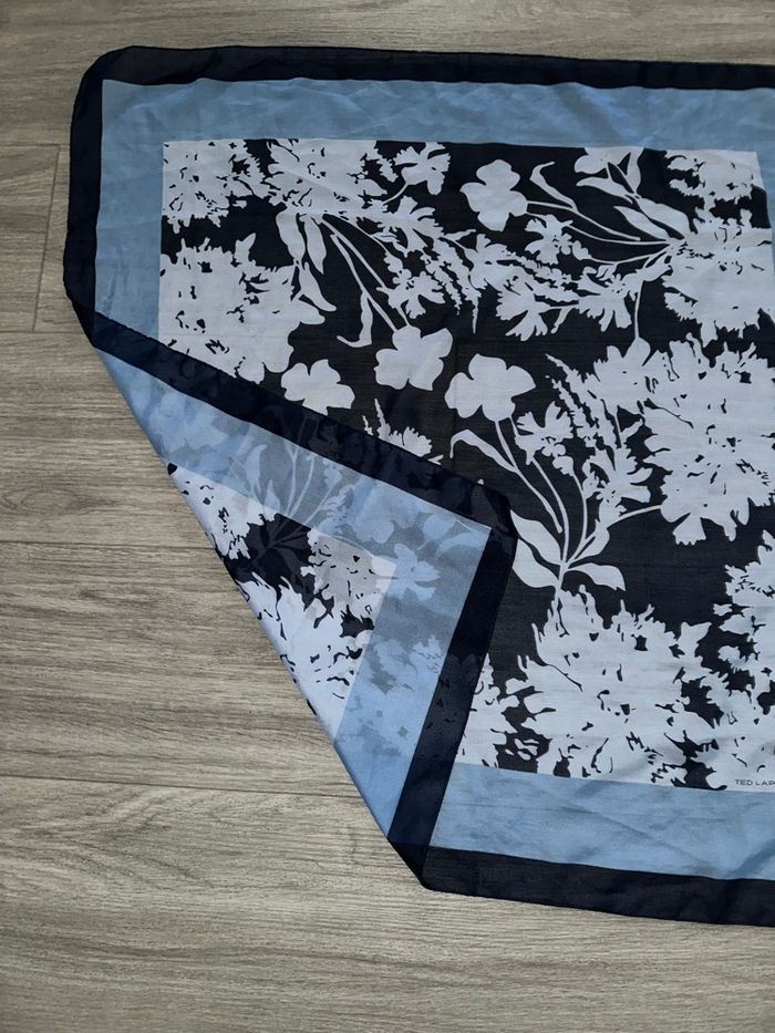 Foulard étole à fleurs bleu marine et bleu ciel Ted Lapidus Vintage 75x75cm - photo numéro 2