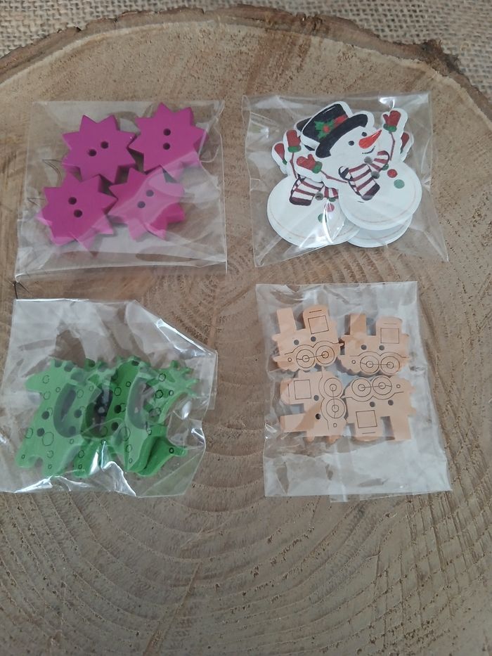 Lot de 4 sachets de boutons en bois D'autres breloques perles pompons boutons biais tissu ect de dispo ds mon dressing n'hésitez pas à jeter un coup d'œil ou à me demander