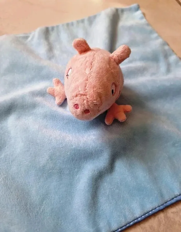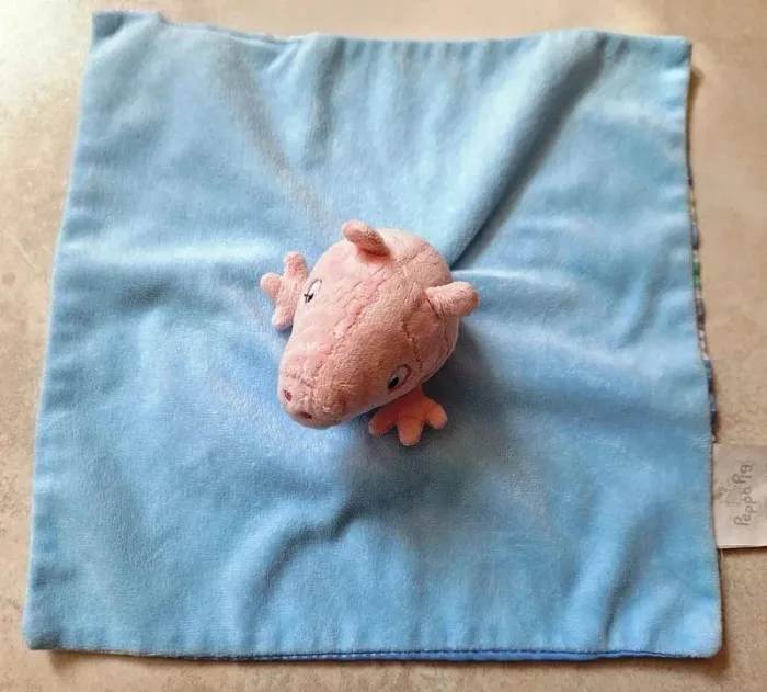 Doudou carré plat bleu - Cochon Peppa Pig - photo numéro 1