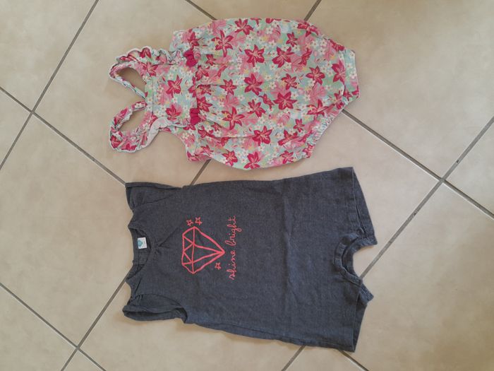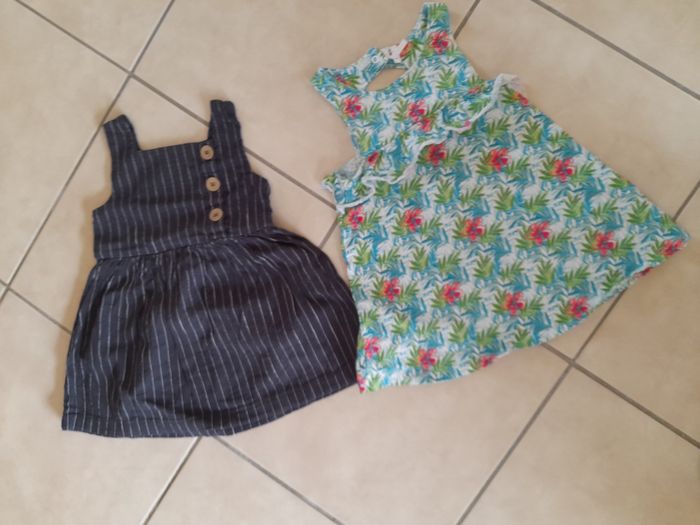 Lot vêtements fille 18 mois 1 tee-shirt à fleurs 18 mois (1 euro) 1 legging à pois Orchestra 18 mois (1 euro) 1 body motifs fraise Orchestra 18 mois (vendu) 1 body à pois blancs Orchestra 18 mois (vendu) 1 body blanc Petit Boucan 12/18 mois (1 euro) 1 body rose manches longues 18 mois (1 euro) 1 gilet blanc à fleurs Pat et Ripaton 18 mois (2 euros) 1 gilet vert HEMA SO 18 mois (2 euros) 1 sous pull rose 18 mois (1,50 euro) 1 sous pull bleu à motifs écureuils 18 mois (1,50) 1 combi-short à fleurs avec pressions entre les jambes et bretelles Sergent Major 18 mois (1 euro) 1 combi-shirt anthracite avec pressions entre les jambes TEX Baby 18 mois (1 euro) 1 robe jaune et blanche à bretelles Orchestra 18 mois (1 euro) 1 robe rose motifs fraises KIABI 18 mois (1 euro) 1 robe bleue à bretelles 18 mois (1 euro) 1 robe à fleurs avec bretelles Orchestra (1 euro) 1 robe noire à rayures blanches KIABI 18 mois (1,50 euro) Le lot de 15 articles 15 euros possible de vendre à l'unité