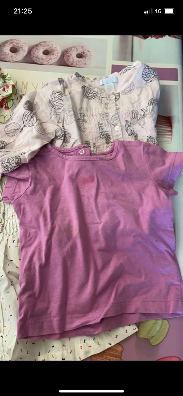 2 blouses et 4 t-shirts dont 1 avec une tache (voir photo)