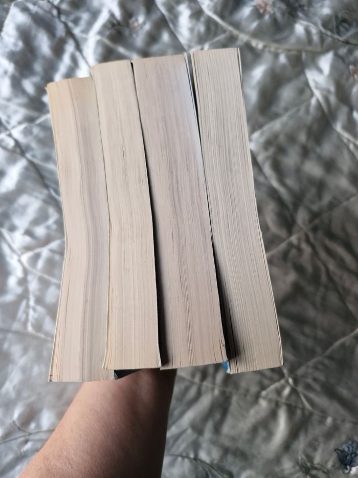 Les 4 tomes ont la pointe des coins face avant cornés.
