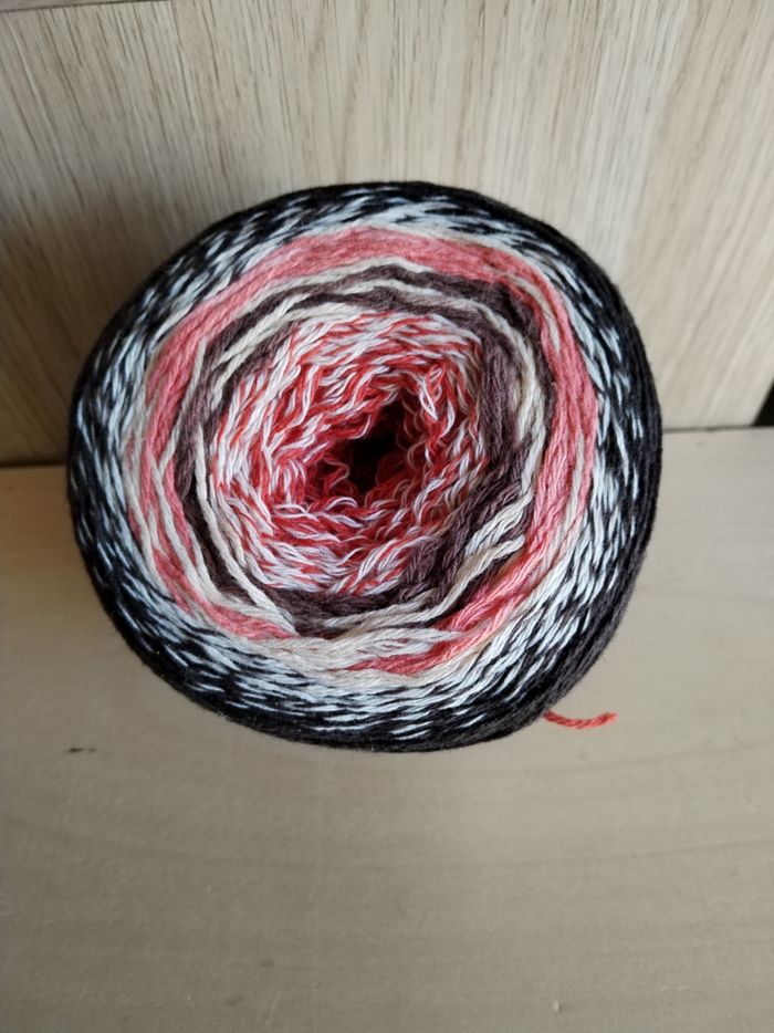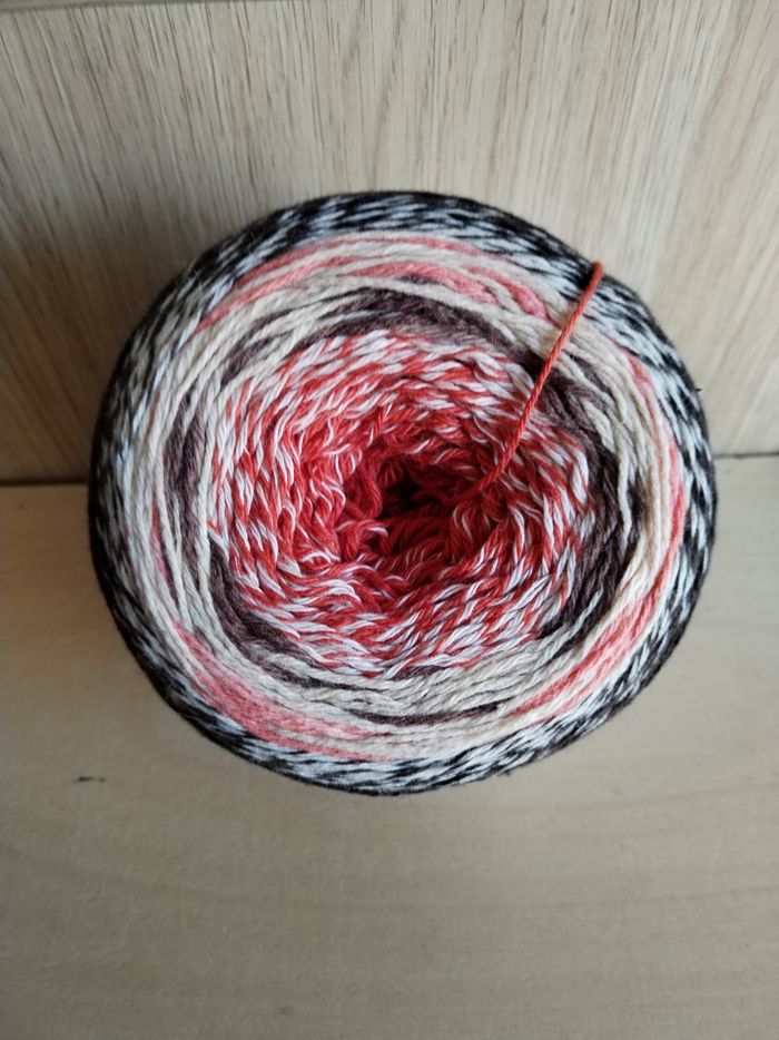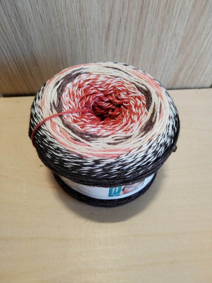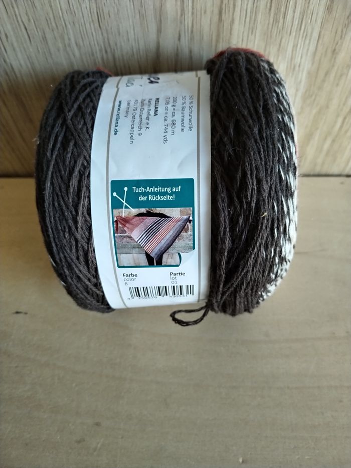 Une pelote de Laine, sous forme de Cake, 200 g env 680 m, 50 % laine 50 % coton, aiguilles 4-5, joli dégradé multicolore, marron beige clair rouille, parfait pour tricoter un joli châle bien chaud et cocooning 🧶🤎on commence par une pointe et les rayures se forment toutes seules 👍 (explications à l'intérieur de la banderole) très facile à tricoter, n'hésitez pas à me contacter pour plus de détails 👍 vraiment très original et il attire les regards 😊🧶