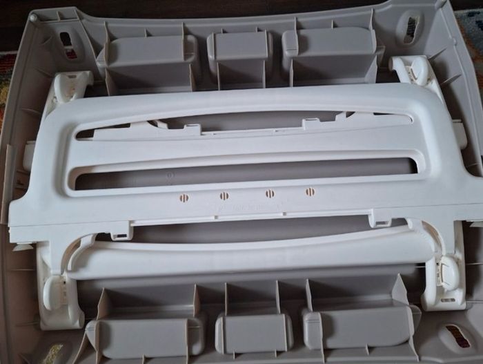 Elle est équipée de pieds pliables et réglables pour se positionner sur la baignoire. Équipée de compartiments de rangement latéraux.