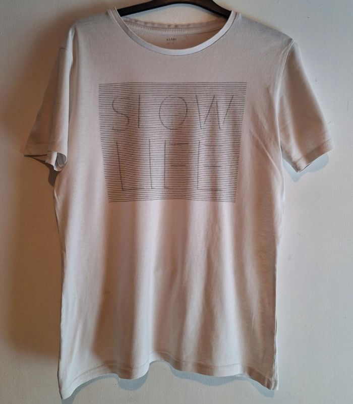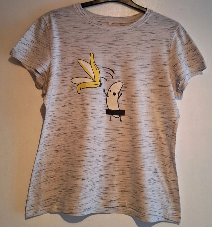 Un blanc imprimé Kiabi légèrement tâché au dos, un vert uni H&M avec un trou devant (pourquoi ne pas lui coudre un écusson pour le cacher) et un mini accroc au dos, un gris chiné imprimé banane avec un point de couture sur le côté et aisselles jaunies au déodorant, un bleu marine Keya imprimé devant et dos. Peuvent toujours dépanner pour dormir ou pour travailler dehors.