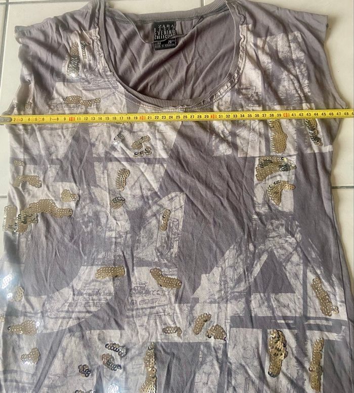 Tee-shirt »Zara »gris,doré et beige - photo numéro 1