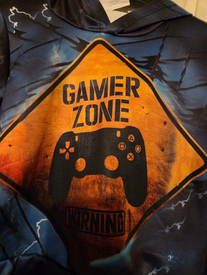 💙🌸 pull capuche garçon 4ans gamer zone 🌸💙 - photo numéro 3
