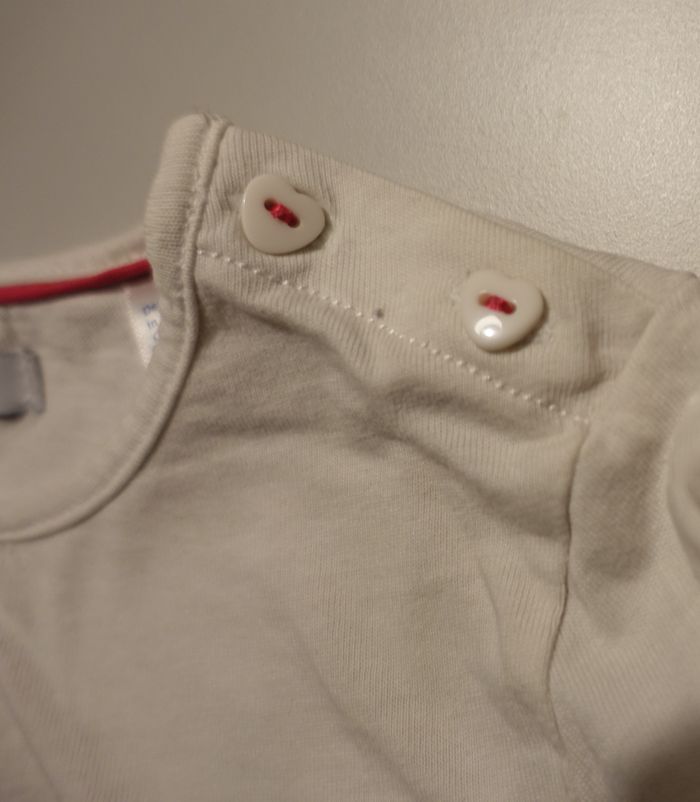 - Boutons en forme de coeur, au niveau de l'épaule gauche, pour un enfilage facilité
