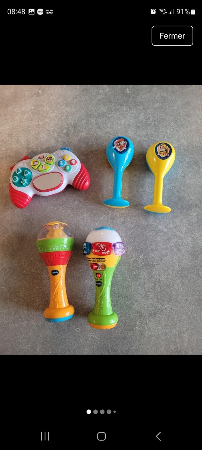 Un joli lot d'instruments de musique pour nos plus jeunes Permets de mettre en créativité les sens sonores de nos enfants leurs permettent d'exprimer leur émotions dans les sons que vtech propose dans ses jouets musicals