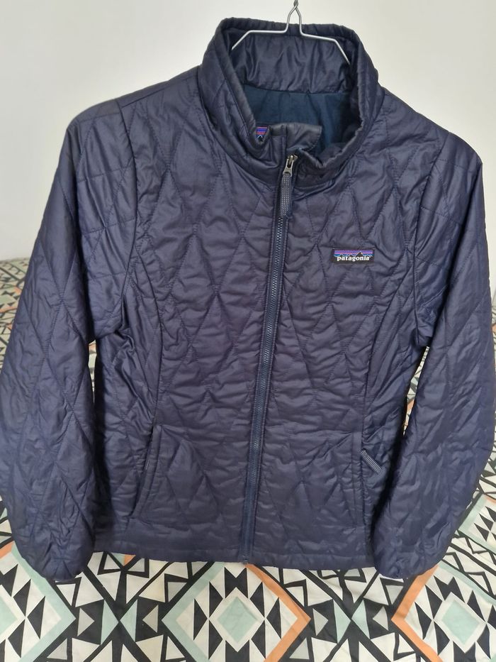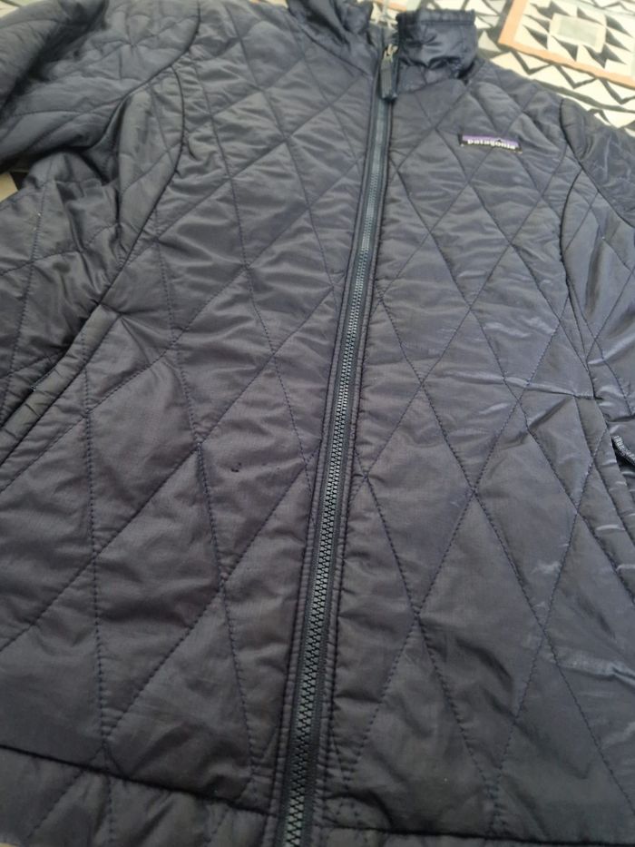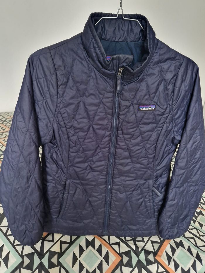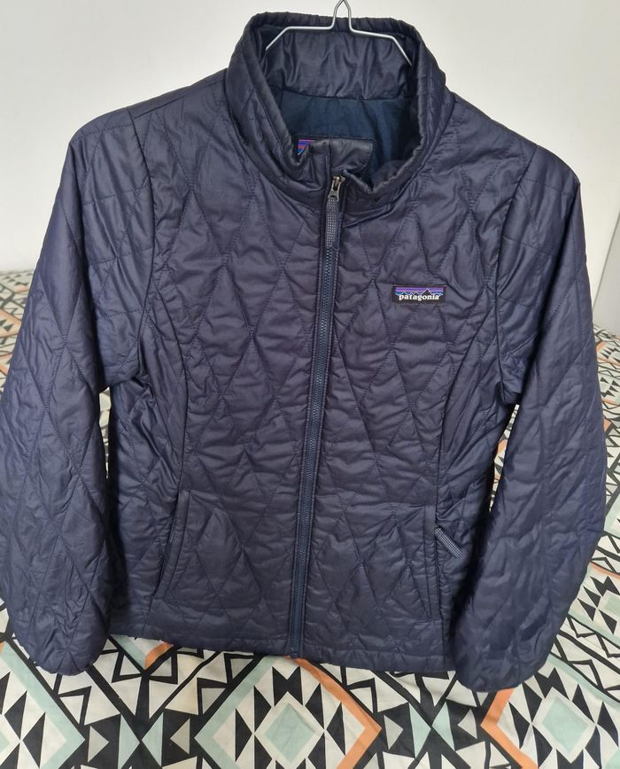 Veste Patagonia matelassée pour enfant, taille L (12 ans), coloris bleu marine.
