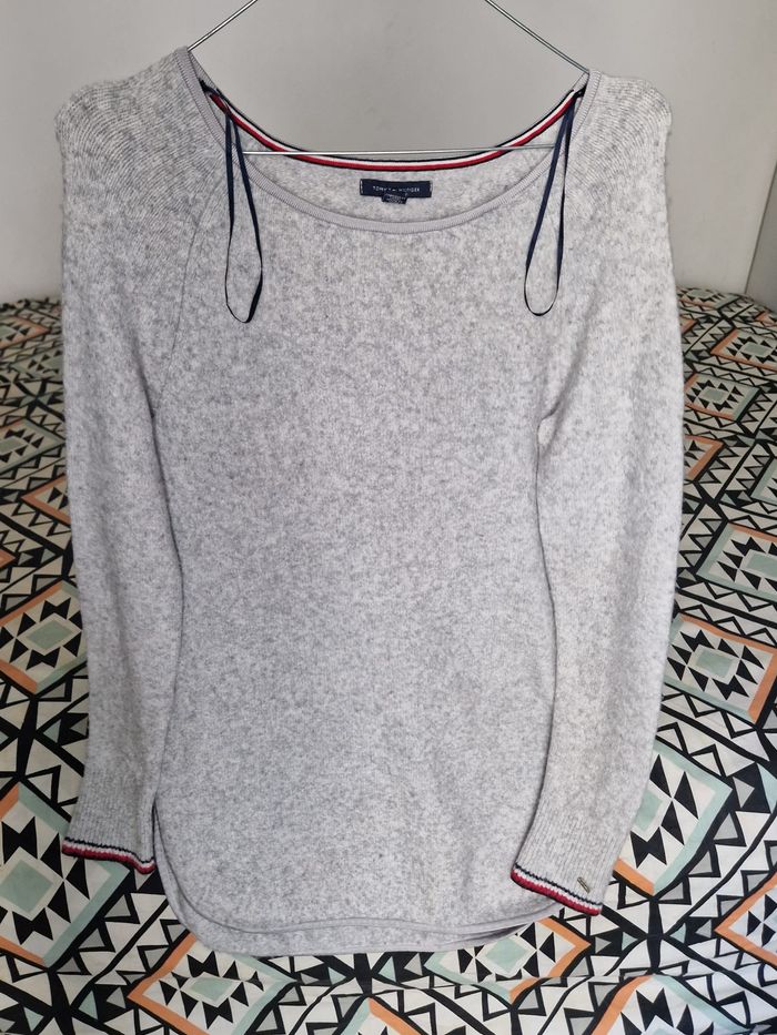 Pull Tommy Hilfiger gris – Femme – Taille XS – Coupe longue