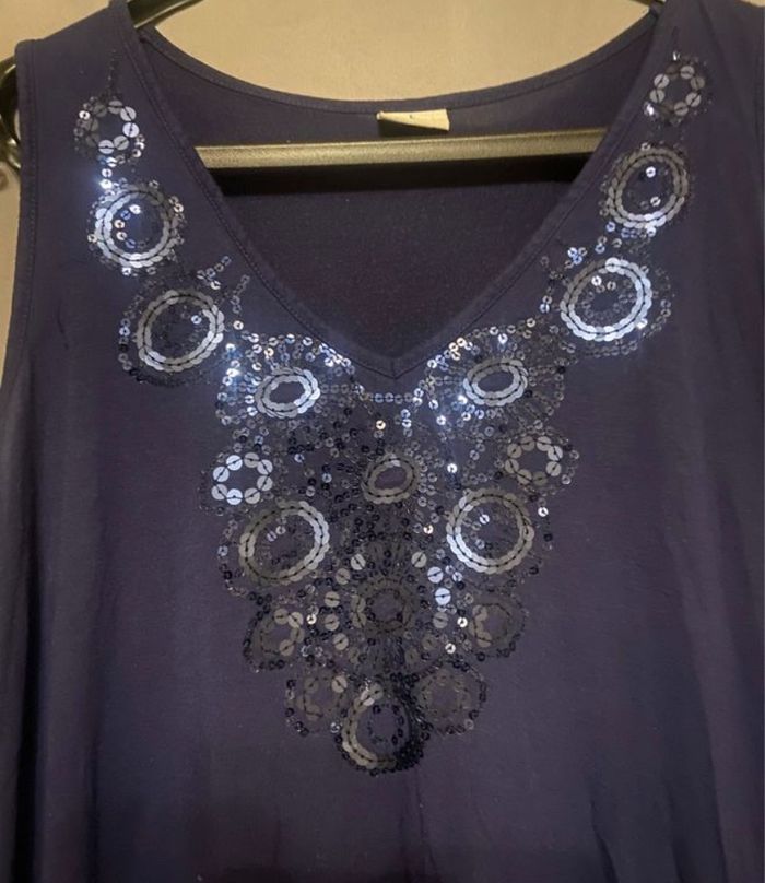 Débardeur à sequins »M&S »bleu nuit,en très bel état.