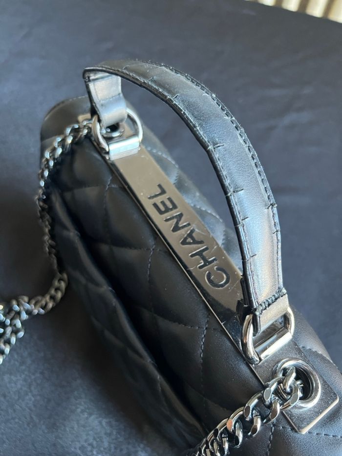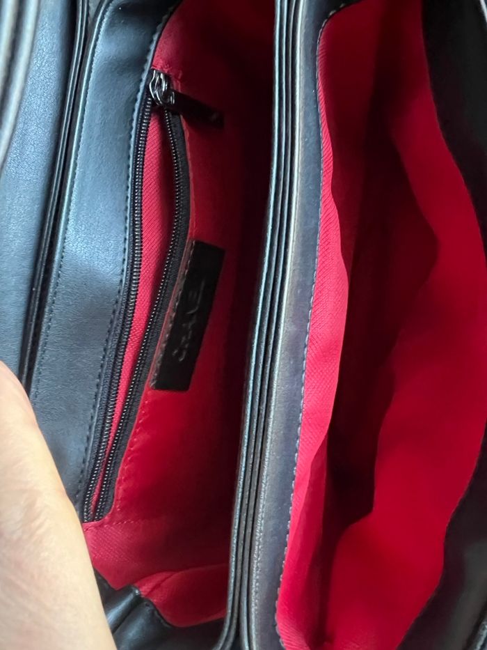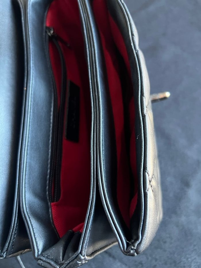 Sac noir à bandoulière, simili cuir, plusieurs compartiments, anse légèrement fissurée Bon etat