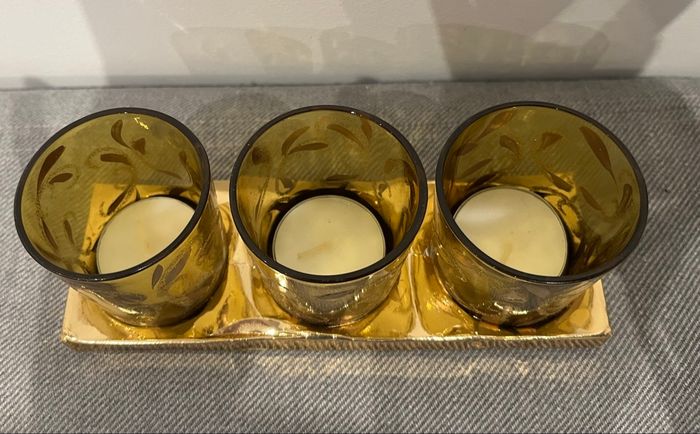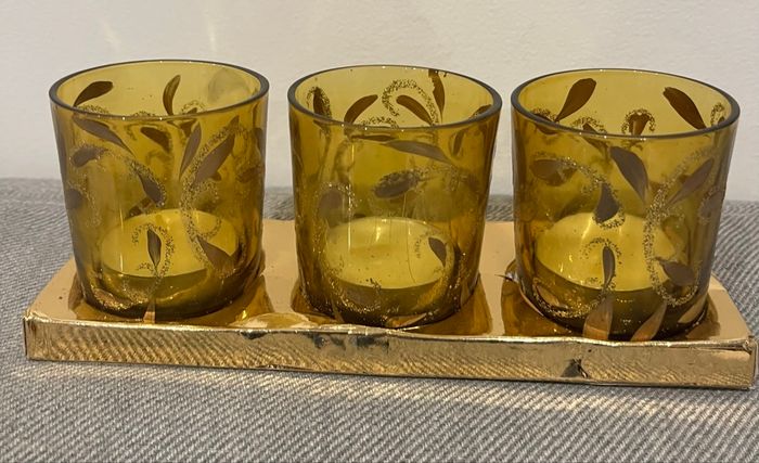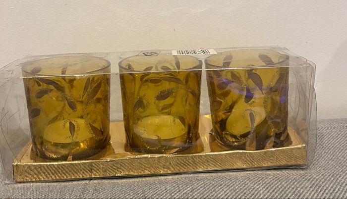 Lot de 3 photophores Neufs En verre fumé et pailletées La boîte en plastique de protection est un peu abîmée.