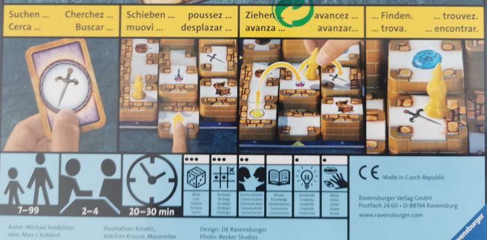 CONTENU : 1 plateau, 26 tours, 4 pions, 12 cartes Trésor, 4 cartes Runes, 24 cartes Magie.