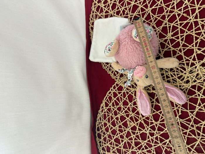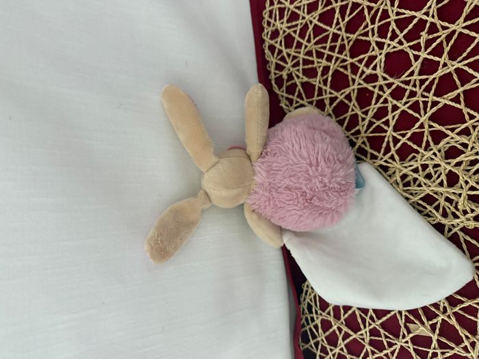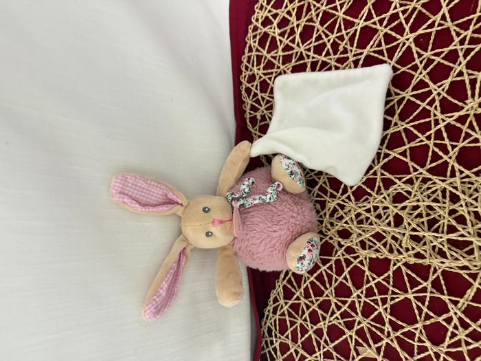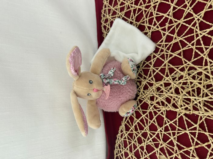 DOUDOU LAPIN ROSE POUPI BOULE  PETIT MOUCHOIR CARRE BLANC FLEURS LIBERTY - photo numéro 5