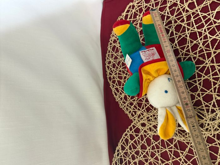 Peluche doudou lapin bleu rouge jaune vert Vite un Câlin Moulin Roty / 28 cm - photo numéro 1