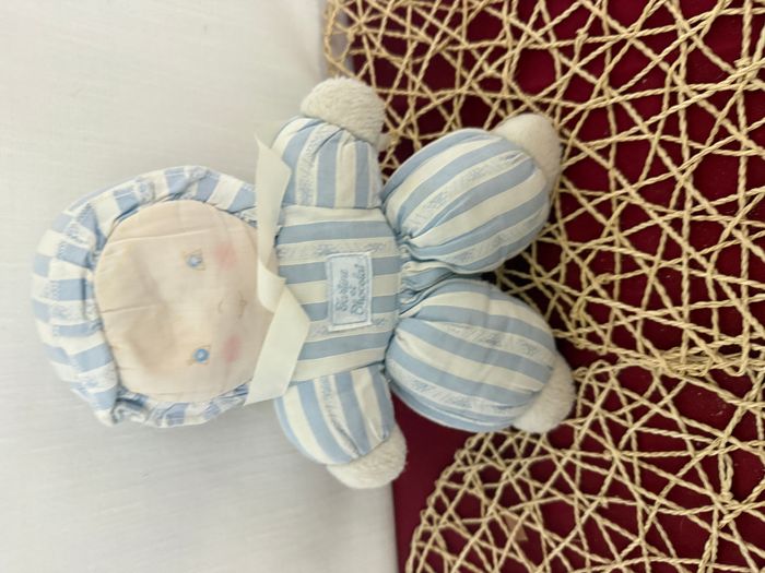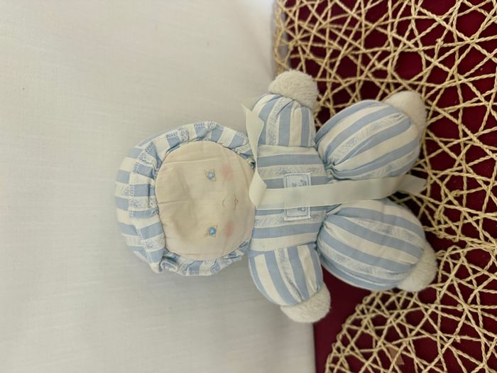 Doudou poupée vintage rayé bleu et blanc Tartine et chocolat