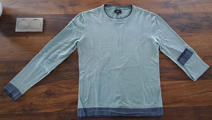 Sweat ou pull pour hommes colorie vert d'eau et bleu marine taille M de la marque Jules en bon état ! 100% coton. Longueur 68cm et largeur des épaules 50cm.