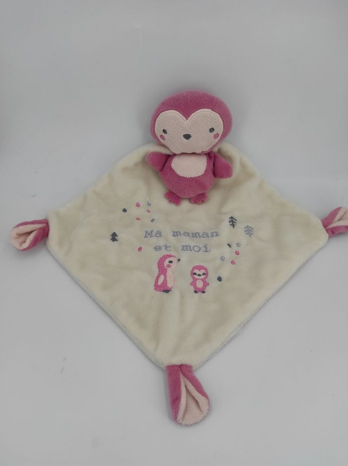 Doudou Plat pingouin rose Maman Mots d'enfants - photo numéro 1