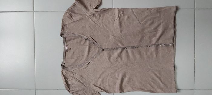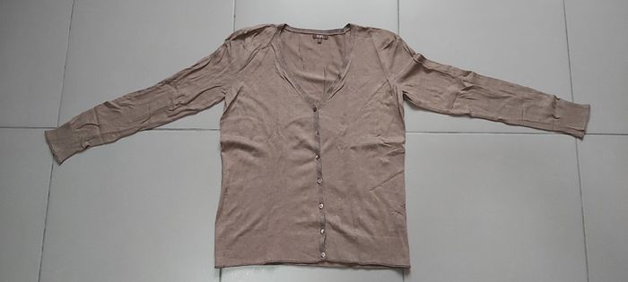 .Gilet Fermeture par boutons Couleur marron , bordure grise avec brillant Taille L #carineddiLfemme