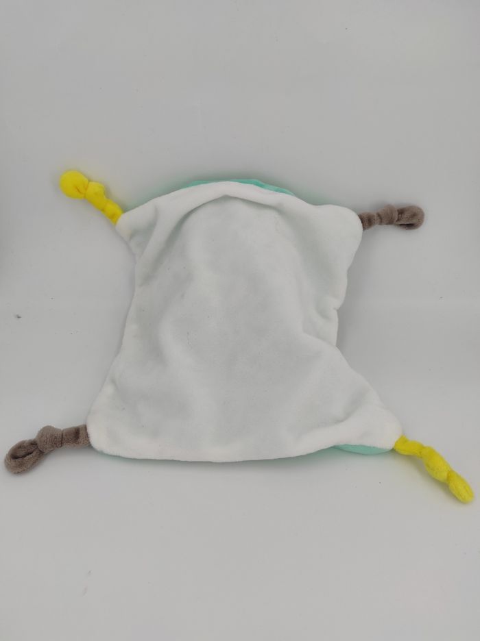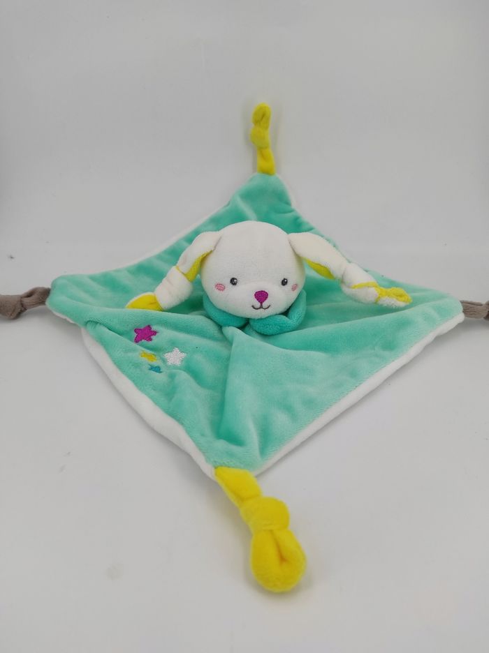 🐰 Doudou Plat Lapin Vert Menthe et blanc avec étoiles brodées.