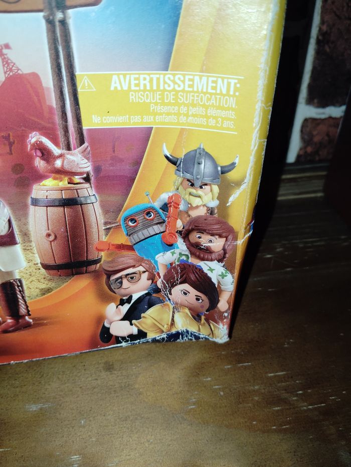 Boîte playmobil movie 70074, neuve mais bien abîmée comme visible sur les photos.
