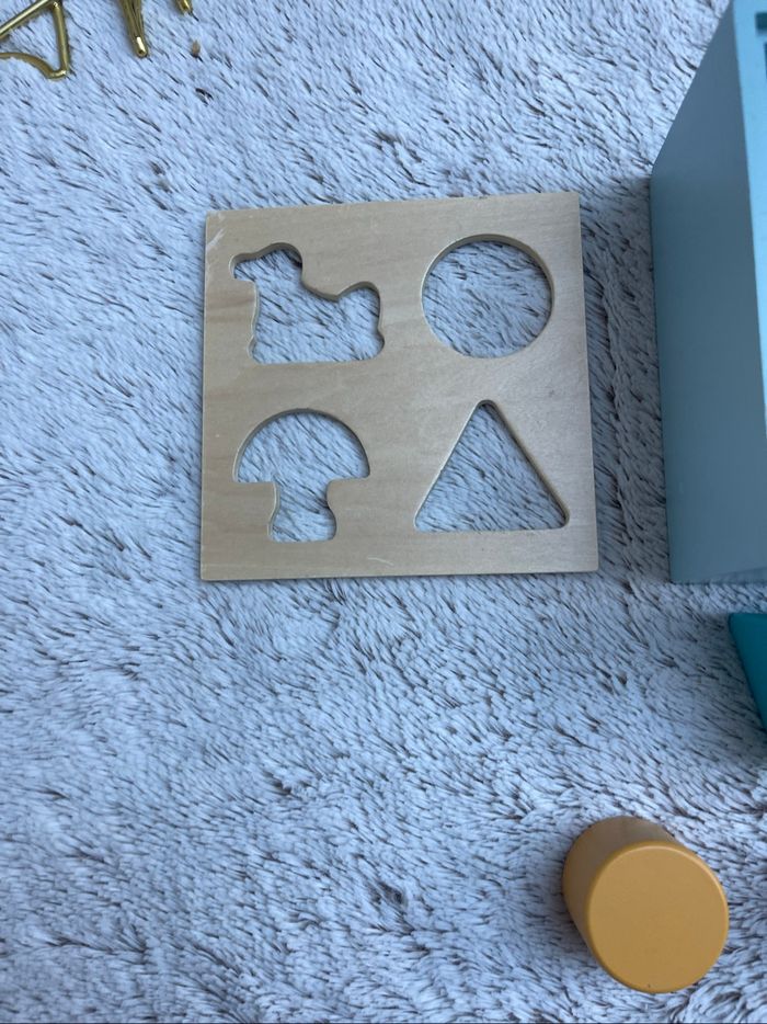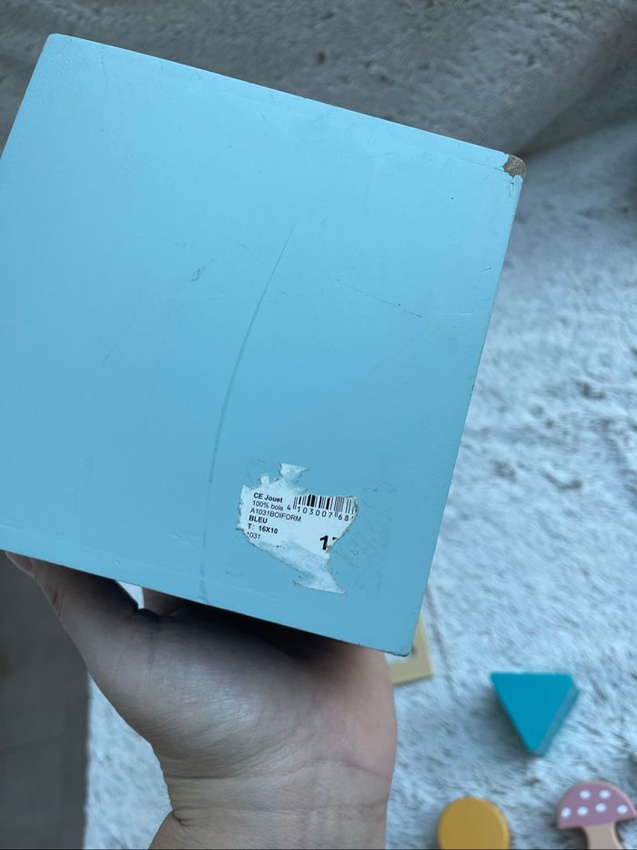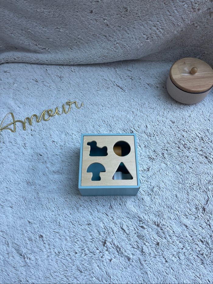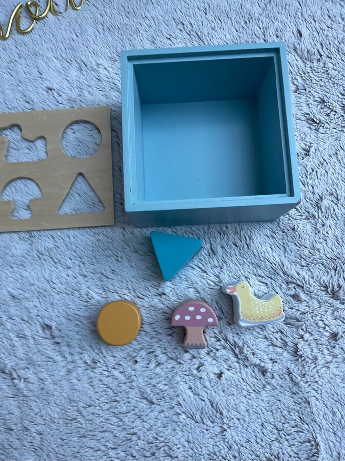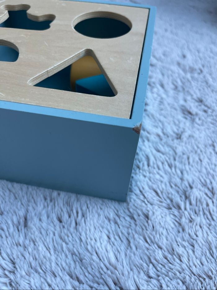 Boîte à formes en bois Bon état juste un petit impact dans l’angle de la boîte voir photo À partir de 12 mois
