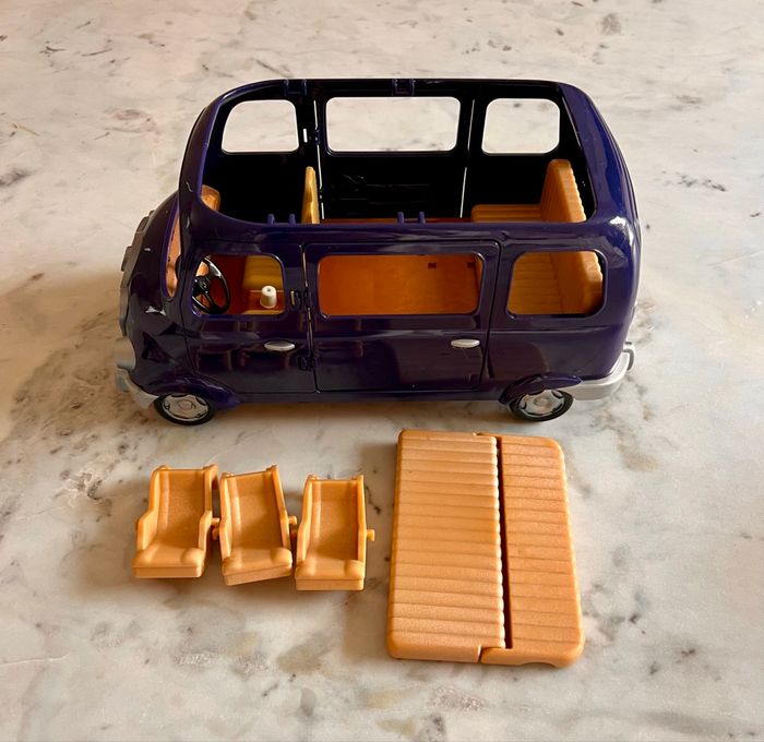 Monospace Sylvanian families 7 places avec 3 sièges auto 1 siège se transformant en lit Portes ouvrantes ainsi que le coffre