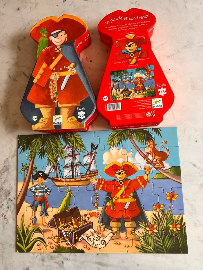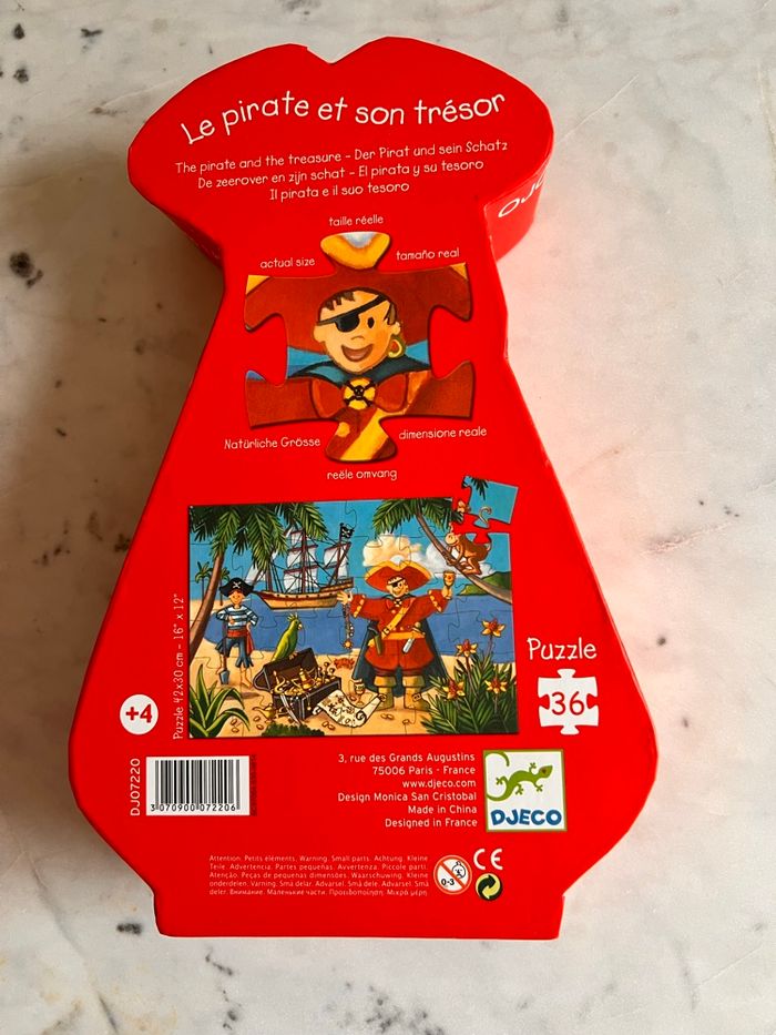 Marque : Djeco Nombre de pièces : 36 • Dimensions : 30 cm x 42 cm • Matériaux : carton épais, Thème : pirate • Conditionnement : boîte rigide • Favorise : développement de la logique, coordination œil-main, concentration