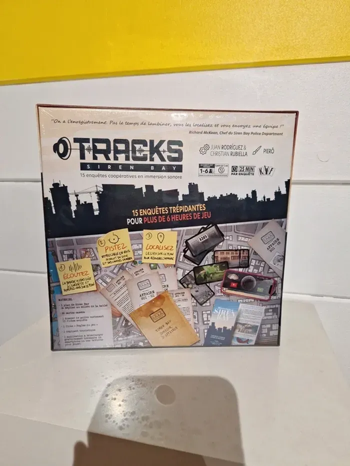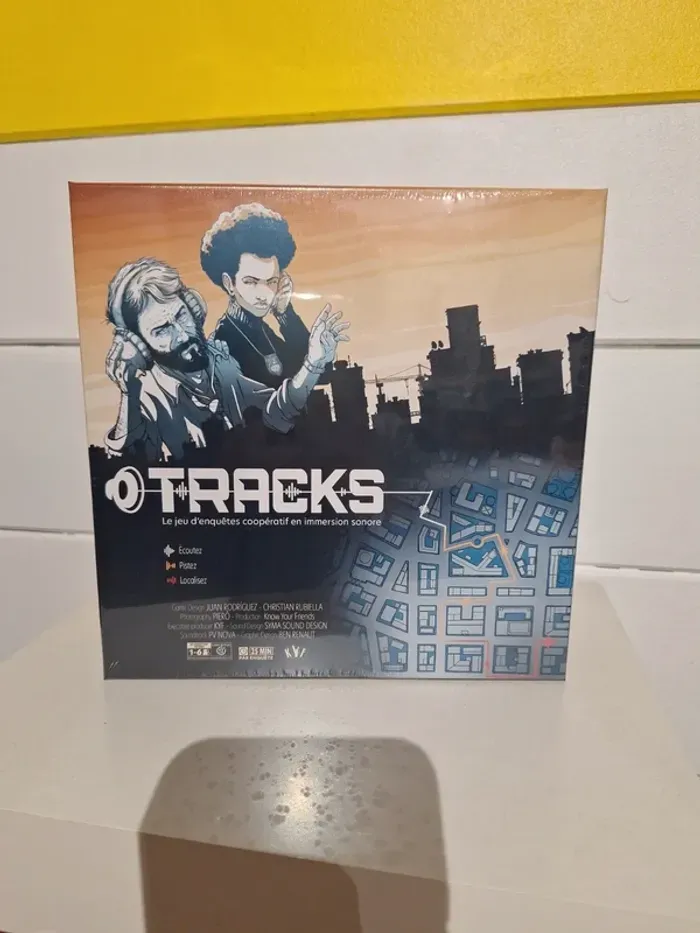 Badaboom : Vente professionnelle - Jeu de société neuf - Prix non négociable Promo 10€ au lieu de 35.70€ TRACKS est un jeu d'enquêtes audio dans lequel vous faites partie de la S.B.A.S (Siren Bay Audio Squad).Cette unité a été fraichement affectée à l'écoute et la vidéosurveillance de la ville de SIREN BAY. Vous devrez résoudre différentes affaires en utilisant un plan de la ville, les caméras de sécurité et surtout les écoutes audio à votre disposition. Ecoutez la bande son de chaque affaire et analysez la pour suivre le trajet de votre cible sur le plan. Vous pourrez alors résoudre l'affaire en localisant précisément votre cible. Le jeu compte 15 enquêtes d'environ 25minutes.