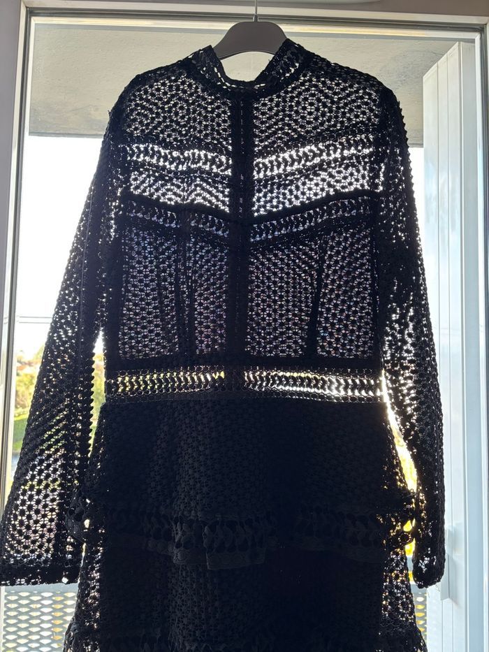 Magnifique robe noir manches longues,avec doublure. Porté très peu en excellent état . N’hésitez pas pour plus d’informations.