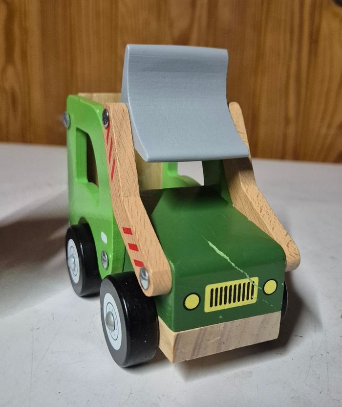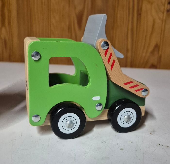 Camion tractopelle en bois Couleur vert Fizzy Tres bon état #camionenbois #engintravauxbois #camionfizzy
