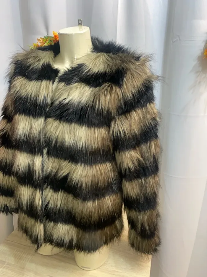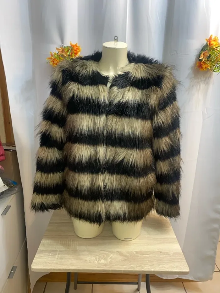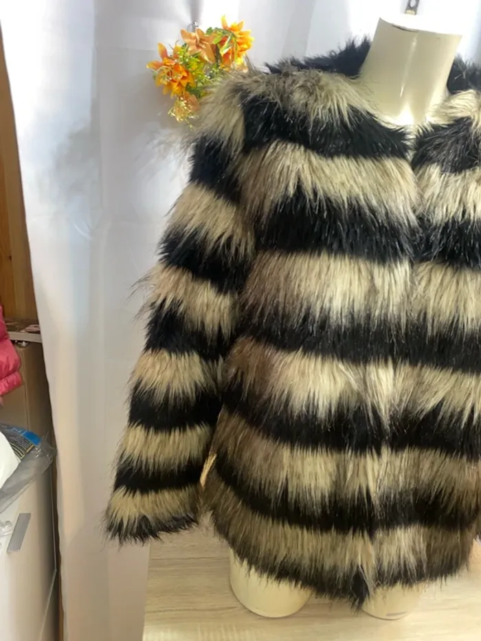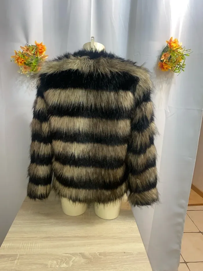Veste fausse fourrure noire et beige doublée ICHI Taille S = 36 - n56p