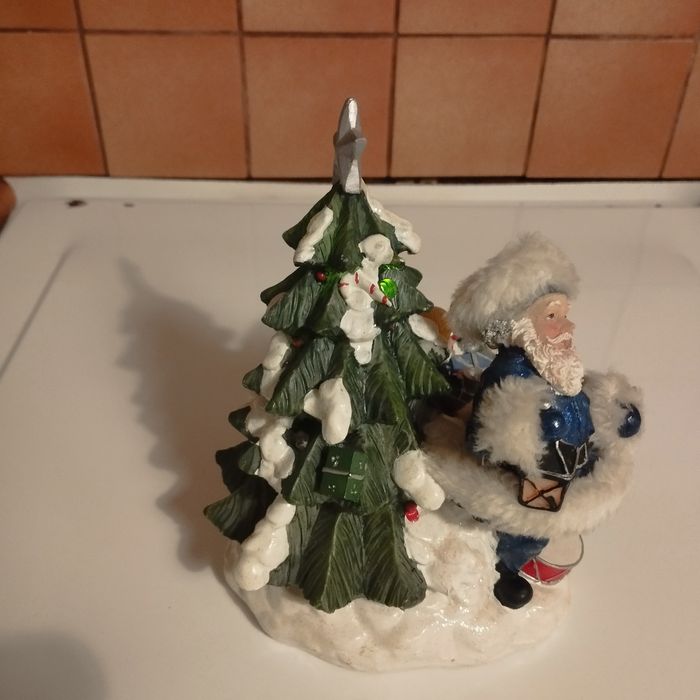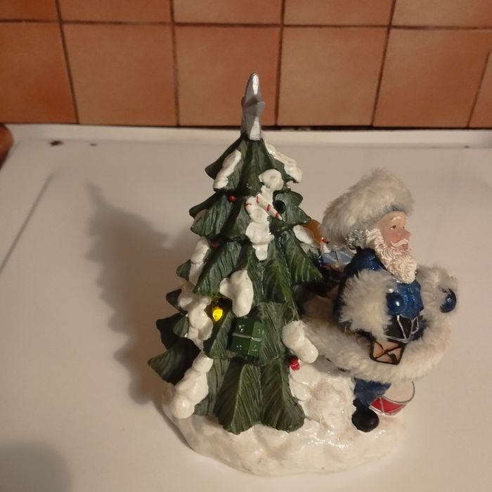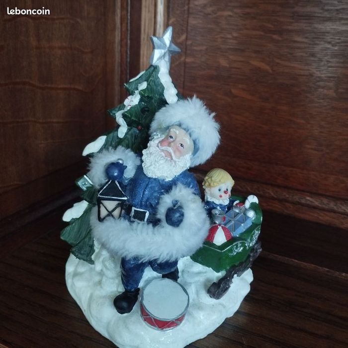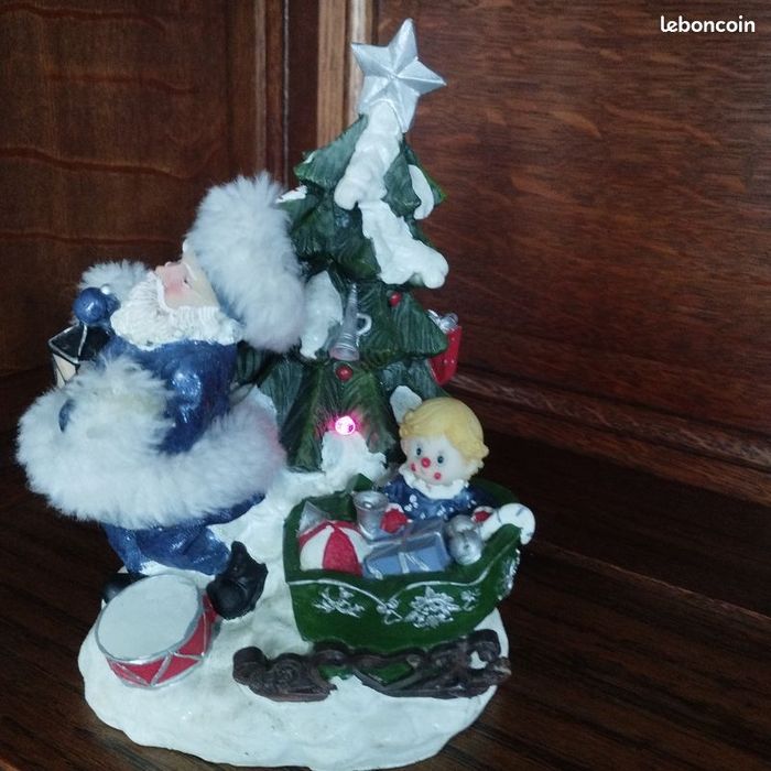 Décoration de Noël lumineux, un sapin un père Noël et son traineau rempli de jouets ! Fonctionne avec 2 piles incluses. Bouton marche arrêt. Hauteur 16 Largeur 13cm. Collection Tradition.
